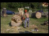 Společně také řezbáři pracovali na vyčištění velkého kmene topolu, ze kterého je prolézačka pro děti.