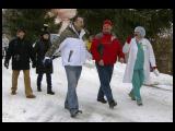 Průvod zastavil u osmi stavení, jejichž hospodyně dostaly předem vyrozumění o návštěvě masopustního průvodu s doporučeným jídelníčkem. Všechny se vyznamenaly výborným občerstvením - děkujeme paní Holubové, Lemonové, Kunrtové, Novákové, Šebkům, Němečkovým, - a zatancovaly si s maškarami. Pohoštění měla připraveno i restaurace U Adama a prodejna vína a sýrů v Pionýrské ulici s výborným svařákem.